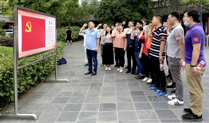 图3 安全工程系和实验中心教工党支部在武昌中央农民运动讲习所重温入党誓词